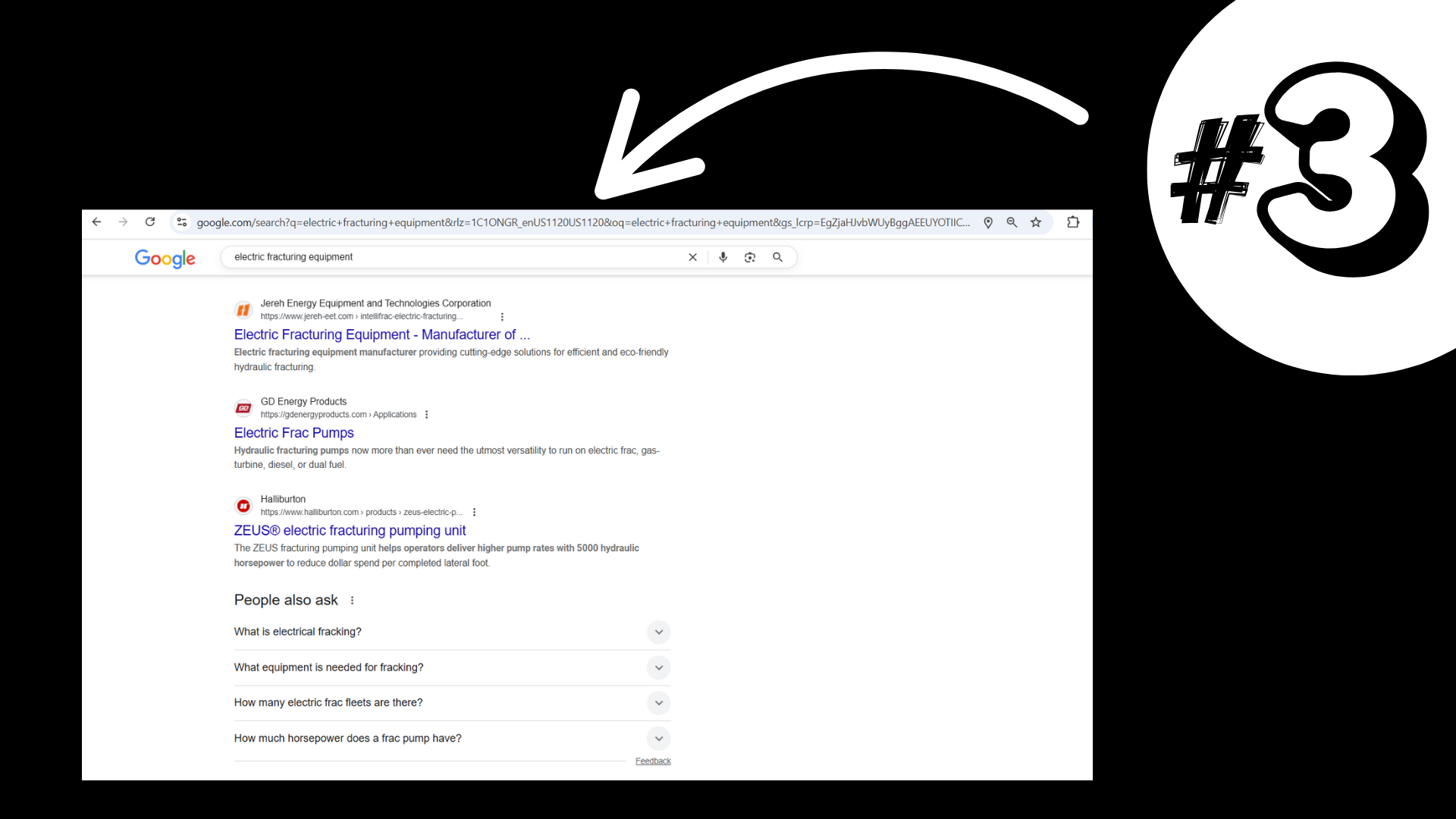 Note: The webpage was specifically optimized for the long-tail keyword "electric fracturing equipment." It would not be expected to rank for the shorter term "e-frac" unless a separate optimization strategy was implemented for that specific keyword.